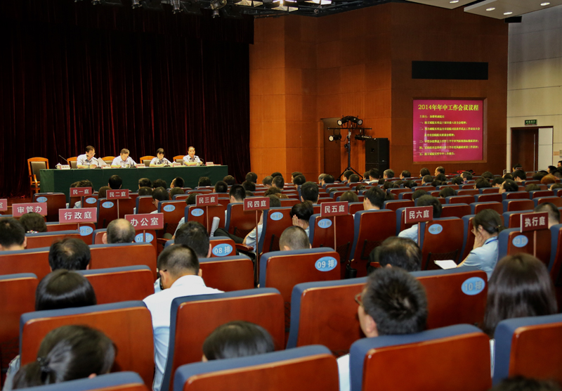 8月11日下午,我院召开全院大会暨2014年年中工作会议。会议由汤黎明副院长主持。会上,陈立斌院长传达了十届市委六次全会精神;刘力副院长传达了全市法院司法改革试点工作动员大会及全市法院院长座谈会精神;审管办沈维嘉主任作了上半年审判质效指标数据讲评;纪检组许忠伟组长作了上半年党风廉政建设工作讲评。最后,陈立斌院长代表党组作了年中工作报告,他总结回顾了全院1至7月份工作,要求各部门深入学习贯彻十届市委六次全会和全市法院司法改革试点工作动员大会、全市法院院长座谈会精神,在下一步工作中着重围绕抓改革推进、抓任务落实、抓问题破解等三个重点,同心协力,干在实处,走在前列,以扎实工作迎接建院20周年。(图、文:上海一中院)